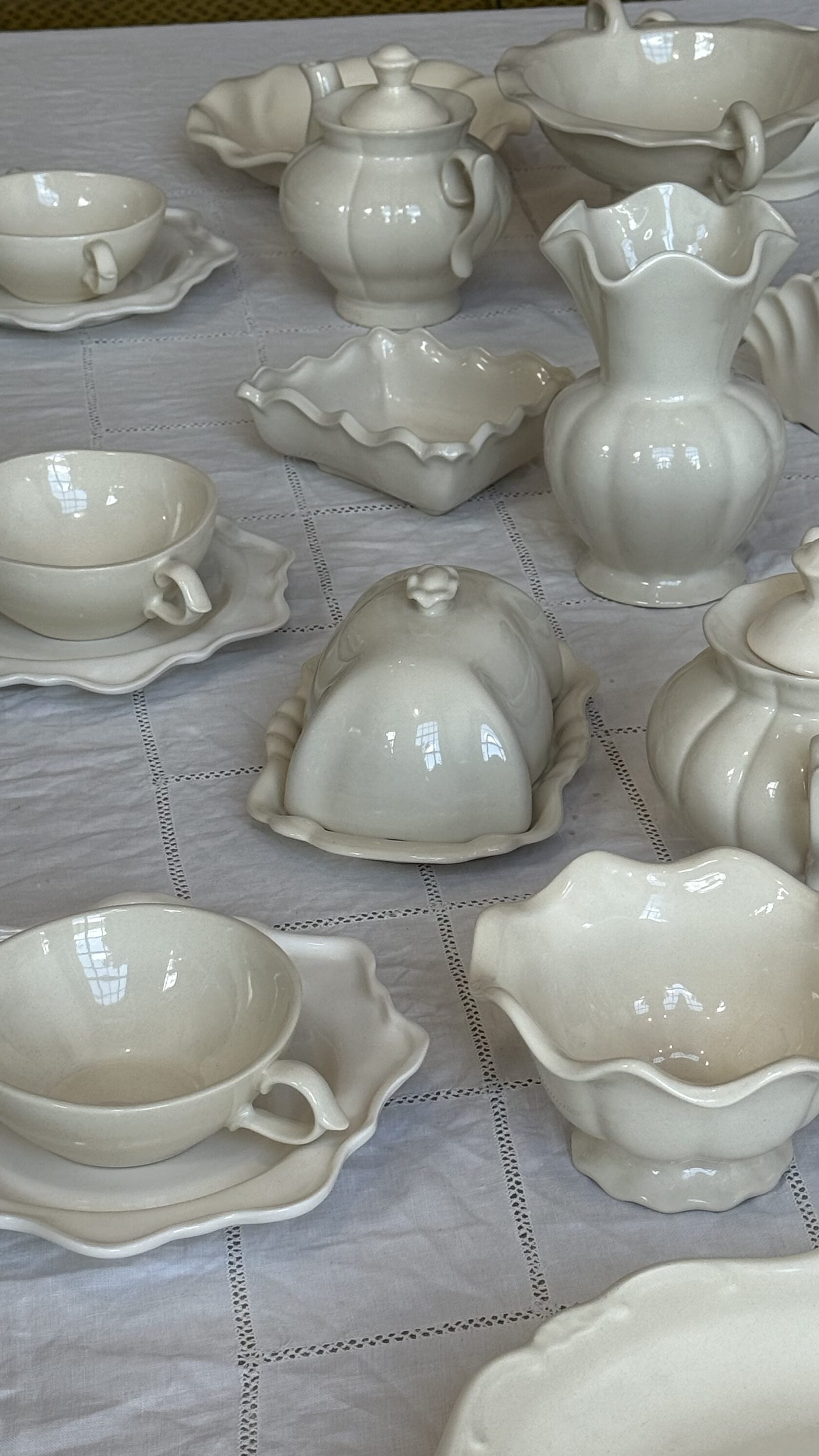Каждый предмет собирался по крупицам. Здесь есть предметы из частных коллекций искусствоведов, переосмысленные формы Гжели, современные и найденные на старинном фарфоровом заводе.